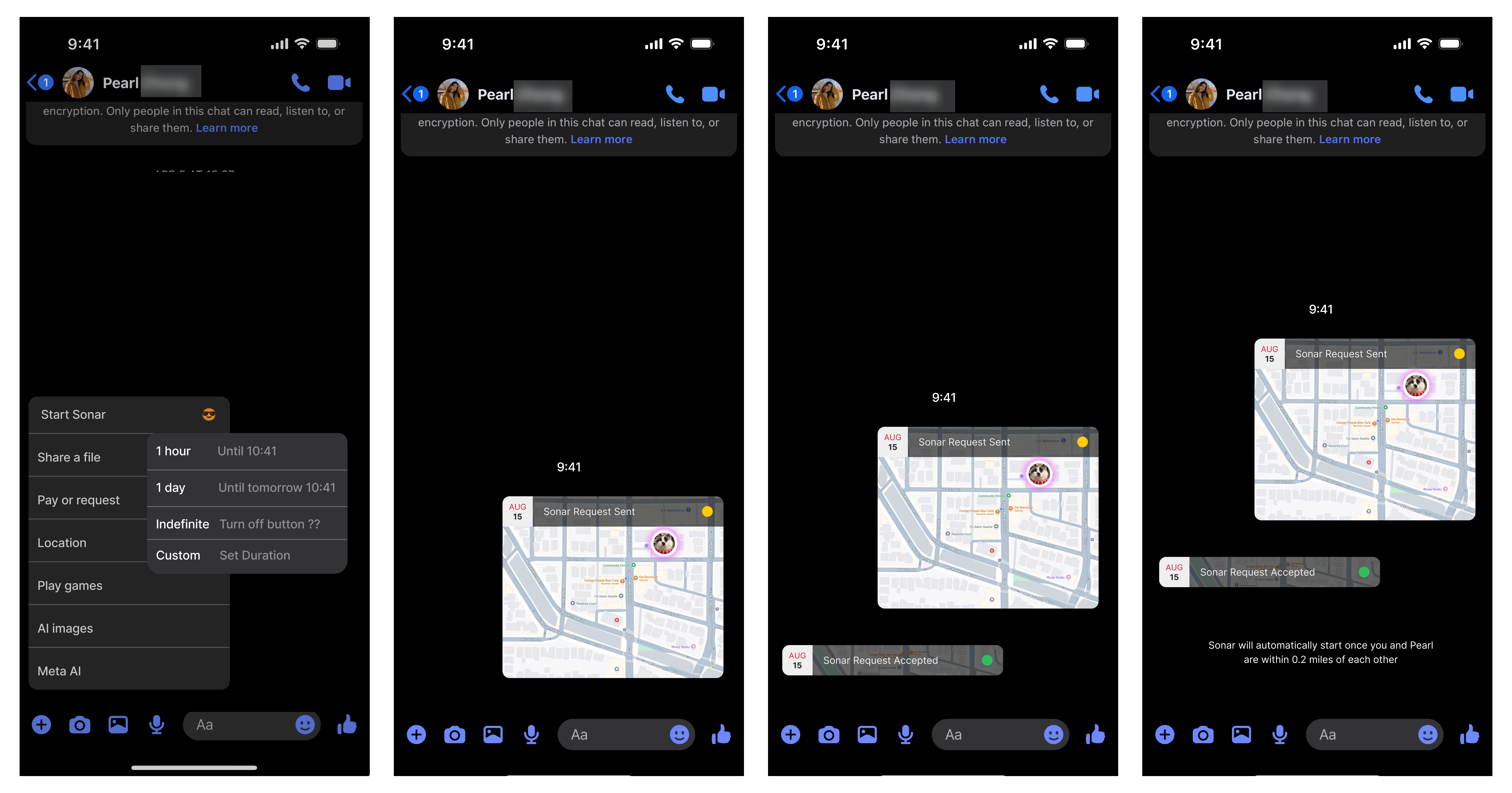 Based on an audit of other location-sharing products (e.g., Apple's Find My), I designed a flow that asked for permissions and duration of Social Sonar at the beginning of every instance